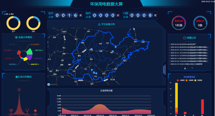 依托創(chuàng)新的物聯(lián)網(wǎng)電力傳感技術(shù),實時采集企業(yè)總用電、生產(chǎn)設(shè)備及環(huán)保治理設(shè)備用電數(shù)據(jù),通過關(guān)聯(lián)分析、超限分析、停電分析、停限產(chǎn)分析,及時發(fā)現(xiàn)環(huán)保治理設(shè)備未開啟、異常關(guān)閉及減速、空轉(zhuǎn)、降頻等異常情況,系統(tǒng)支持PC、手機、平板電腦等多種終端訪問。